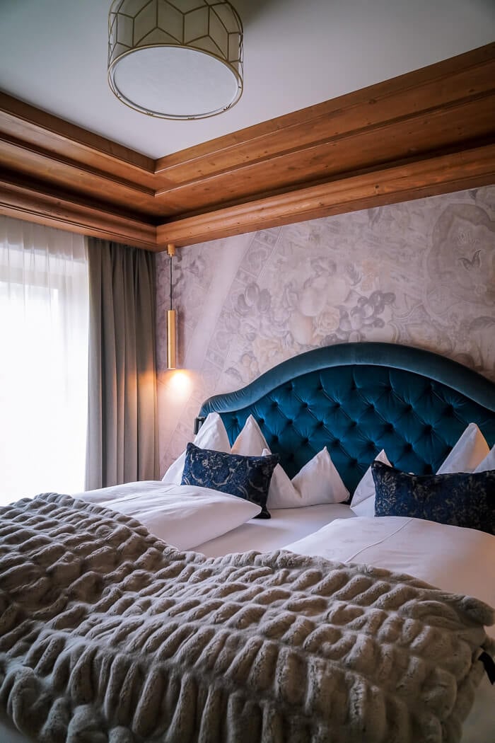 Der hauseigene Wellnessbereich ist eine Mischung aus Neu und Alt. Zu Beginn fanden wir es etwas schwierig, uns zurechtzufinden. Zu den Highlights zählen der Indoor-Outdoor-Pool mit Bergblick, das Sole-Dampfbad und der Raum der Stille: eine Entspannungszone mit Wasserbetten und Schaukelstühlen.
