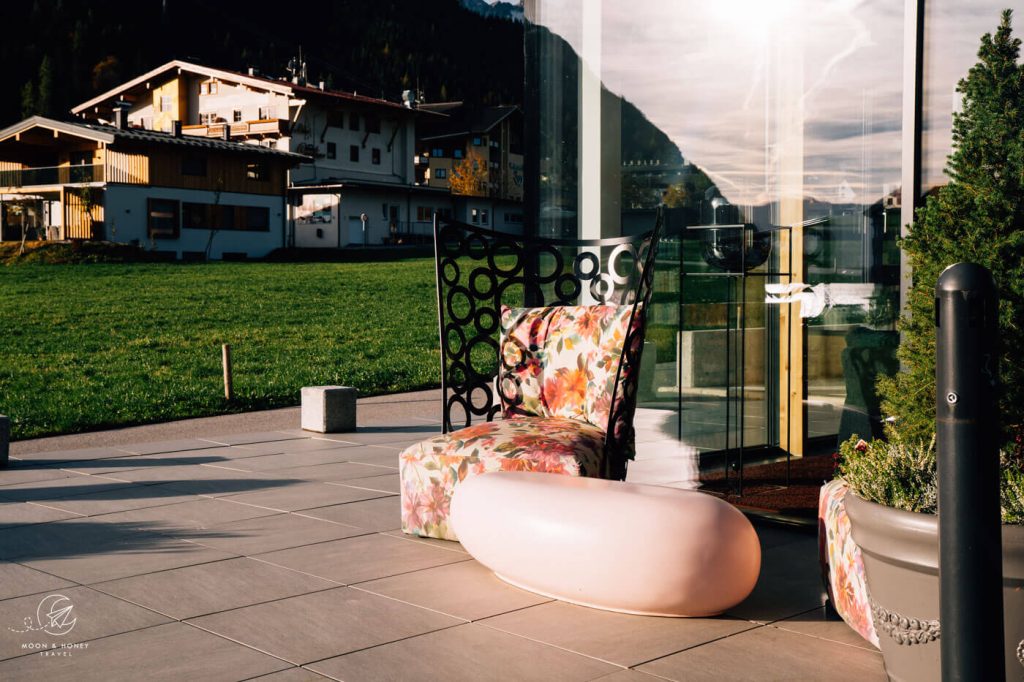Hotel Auszeit’s motto is “alles können, nichts müssen,” which means you can do everything, but you don’t have to do anything. If the weather is stormy, or you simply need a break from active pursuits, you can take a “Time Out” and relish the hotel’s pool, wellness area, mountain-facing terrace, and garden.