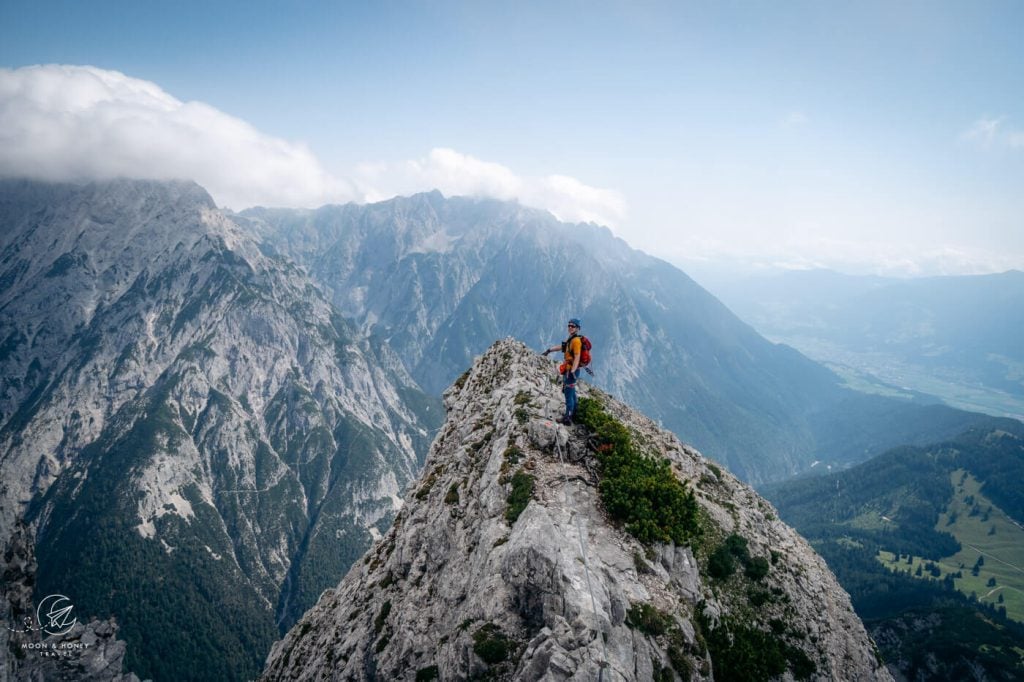 To reach the Hundskopf summit, hikers have two options. They can either ascend the 15-minute Felix-Kuen-Steig (Grade A/B), a short and easy via ferrata (Klettersteig in German). Or, they can ascend the eastern ridge to the summit, which is an airy, partially-secured path.