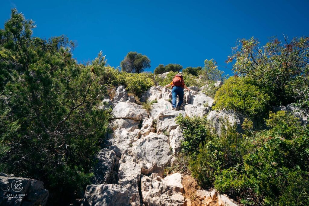 It’s possible to tackle this Calanques National Park route in either direction, but we recommend starting in Cassis and hiking west, in order to ascend scrambling sections and to hike with the sun at your back. By starting in Cassis, you’ll also enjoy a quiet morning in the darling seaside town.