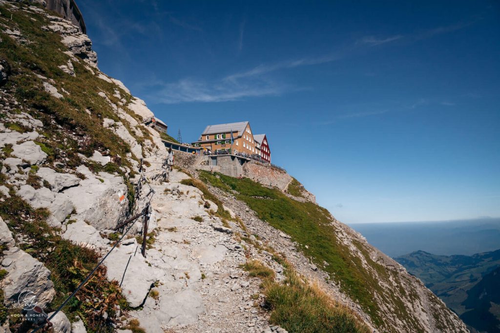 There are several places to eat along the trail, including Berggasthaus Rotsteinpass and Berggasthaus Alter Säntis.